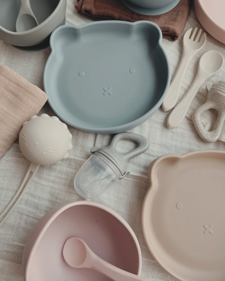 Set de tacâmuri cu husa din silicon Zoe Koala, Smokey Blue - The Cotton Cloud
