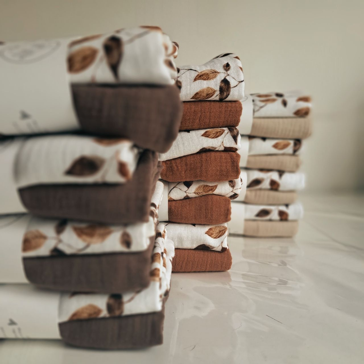 Set de 4 museline din bumbac organic 65X65cm, Hazelnut- Lullaby Planet