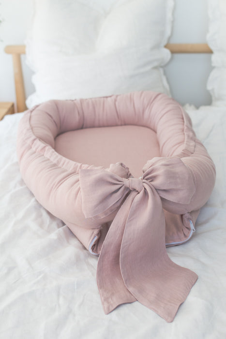 Babynest din in moale cu fundita Powder Pink - Babyly