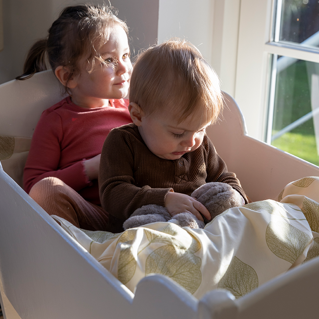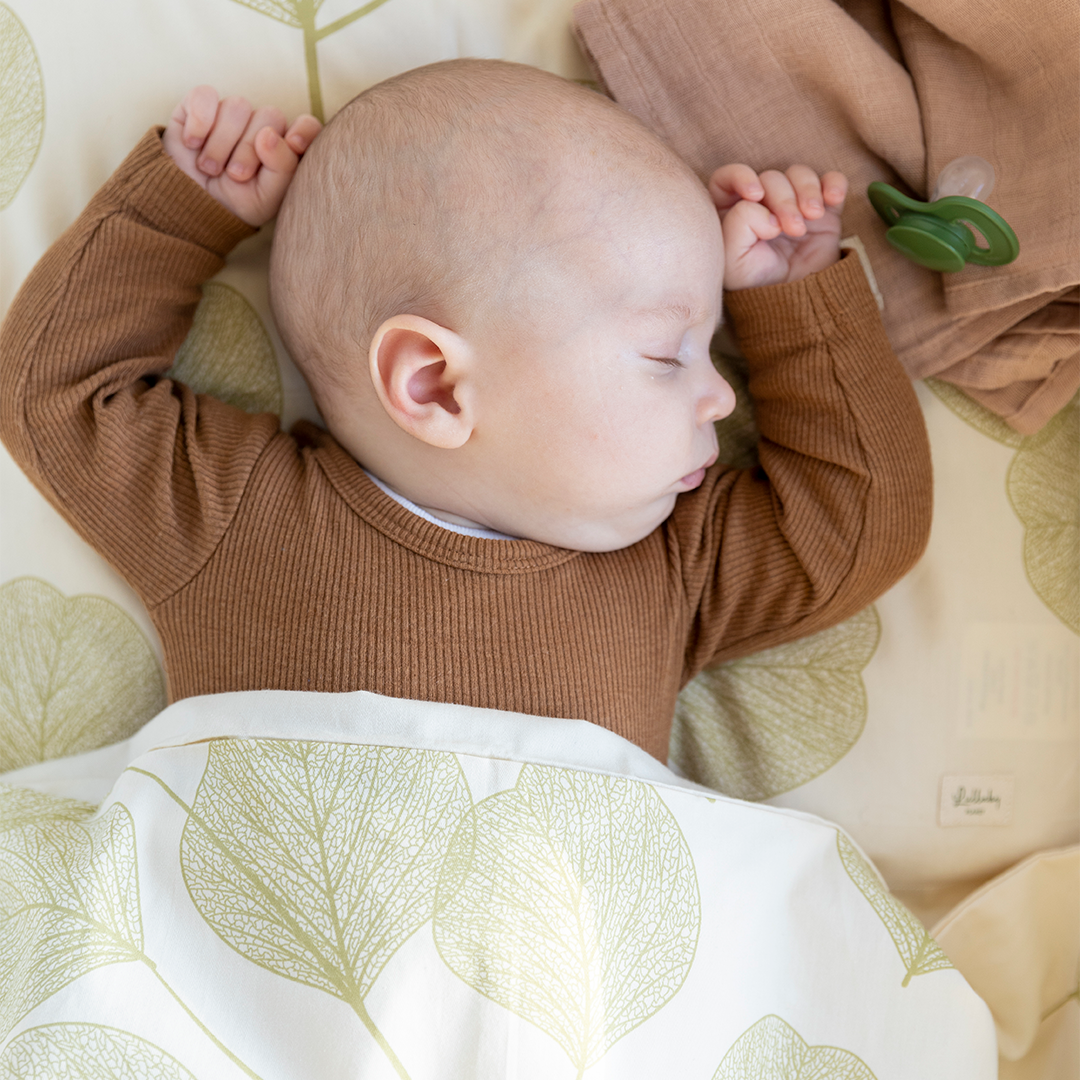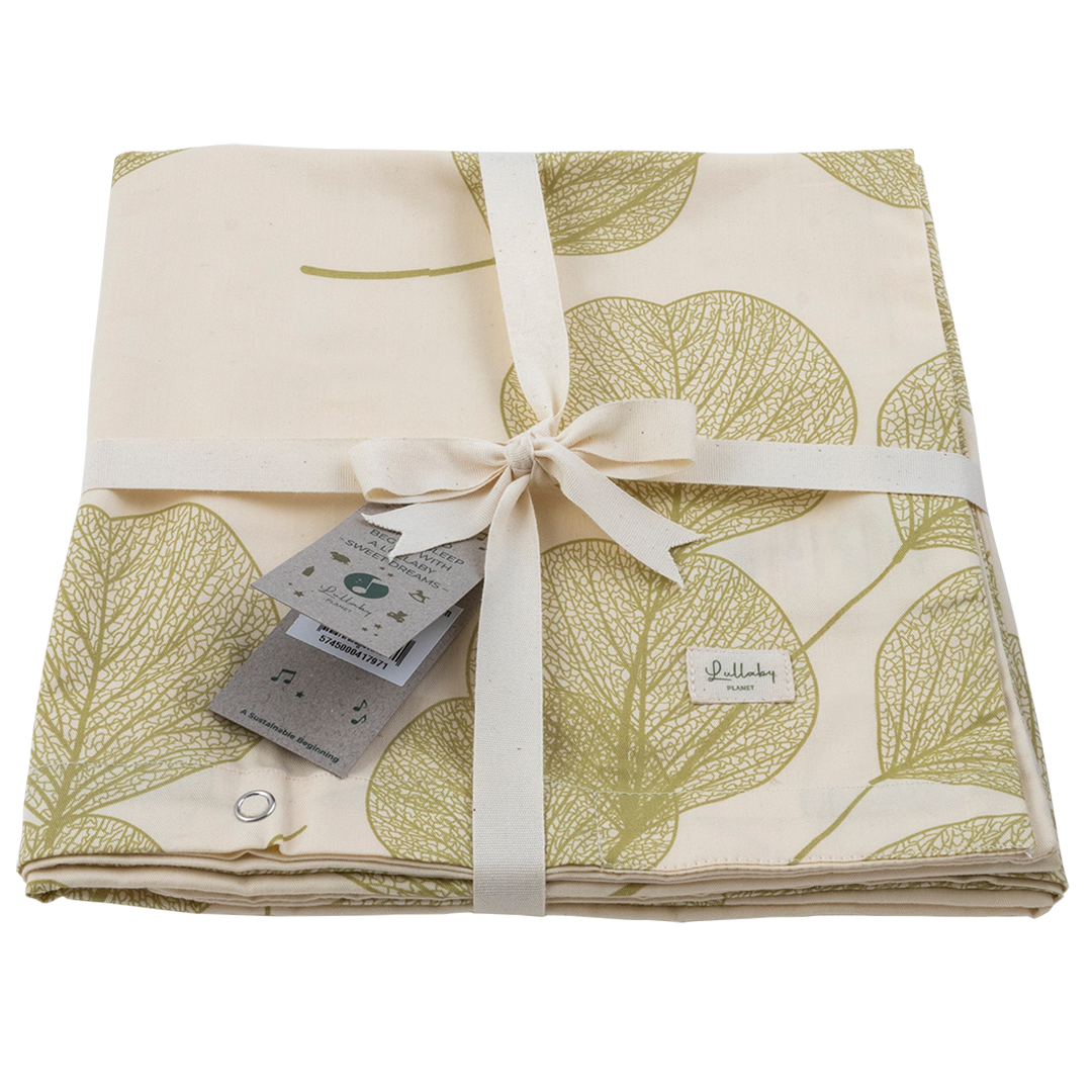 Lenjeria de pat este realizată 100% din bumbac satinat organic moale certificat GOTS, care permite pielii copilului să respire și îl însoțește confortabil pe tot parcursul nopții. Designul frumos, cu frunze fine de pe partea din față a lenjeriei de pat vă invită să visați. Spatele lenjeriei de pat este neimprimat.