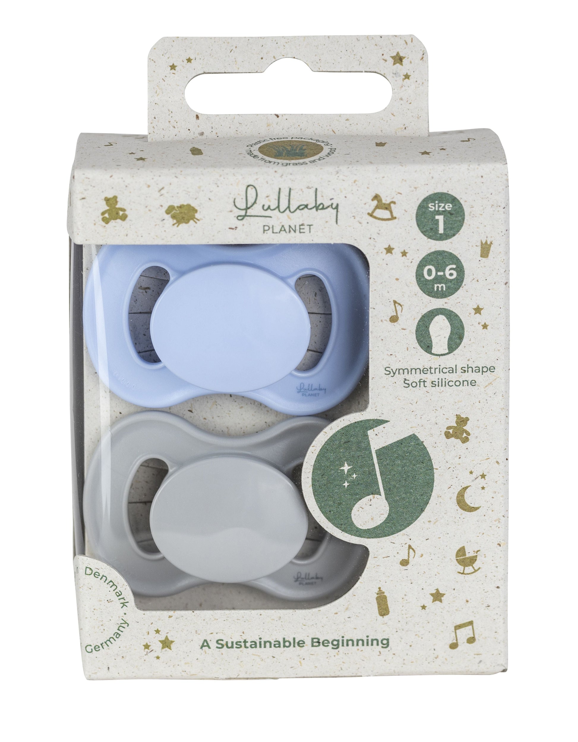 Set doua suzete symetrical 0-6 luni, ice blue& misty grey, Lullaby Planet