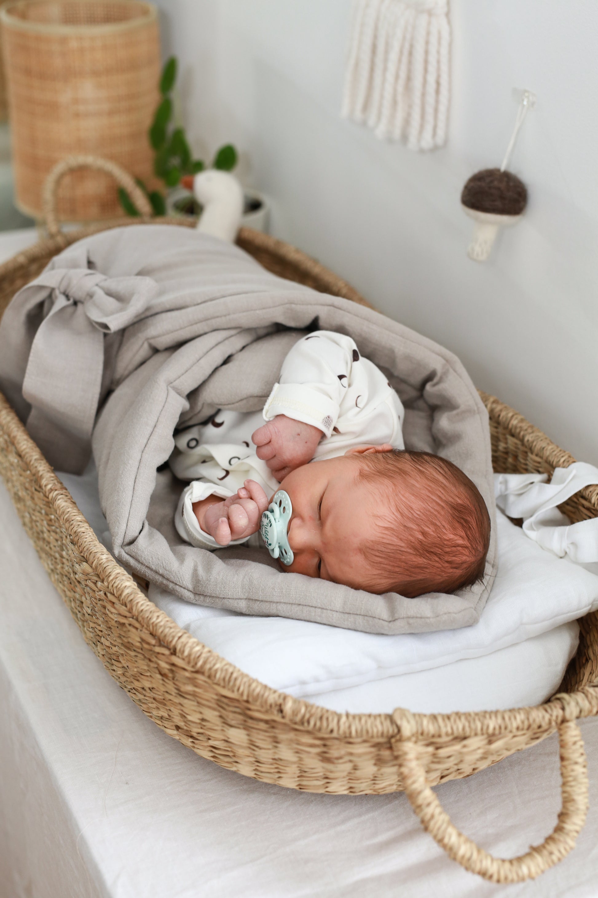 Potrivita din primele momente ale vietii bebelusului, confectionata dintr-o panza moale in care bebelusul se v-a simti in siguranta. Interiorul contine silicon, material antialergic. Panglica mare si frumoasa va permite sa legati o funda oricum doriti. De asemenea, poate fi folosita ca paturica, cuvertură sau saltea de joaca. Produsul trebuie utilizat sub supravegherea unui adult.